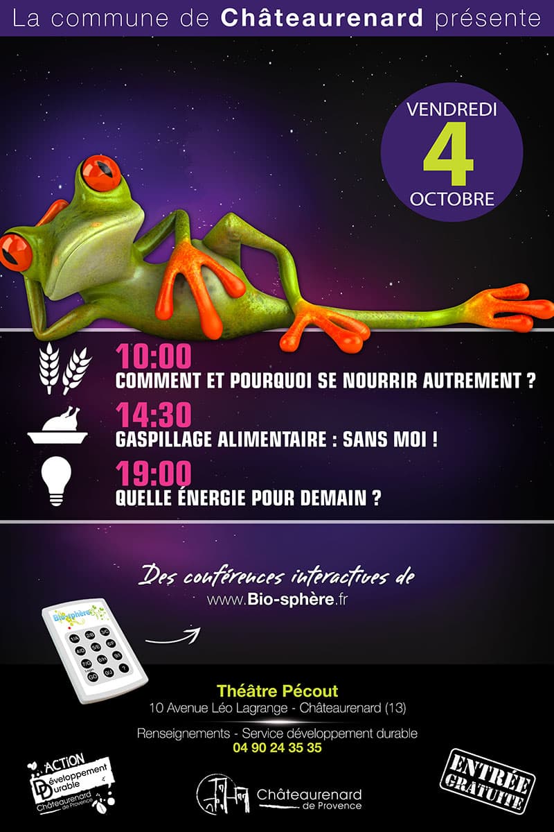 Au fil de ces dates, vous allez pouvoir découvrir nos actions d'éducation, de sensibilisation et de formation à l'environnement et au développement durable. N'hésitez pas à venir nous voir : vous serez les bienvenus. Sauf mention contraire, l'entrée à ces conférences est libre et gratuite (la réservation est parfois conseillée par l'organisateur). Notez enfin que les interventions réalisées dans un cadre privé (notamment celles qui ont eu lieu dans les établissements scolaires, entreprises ou collectivités) n'apparaîtront pas ici.